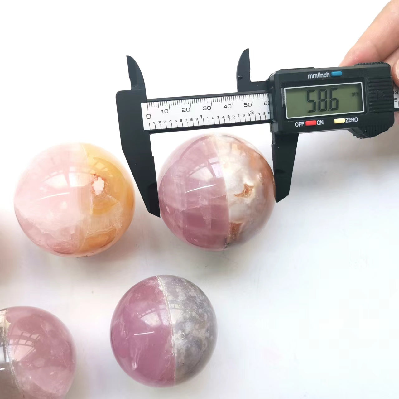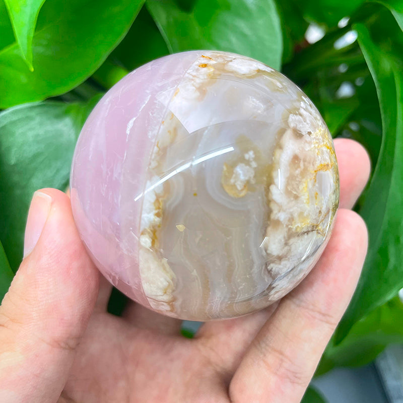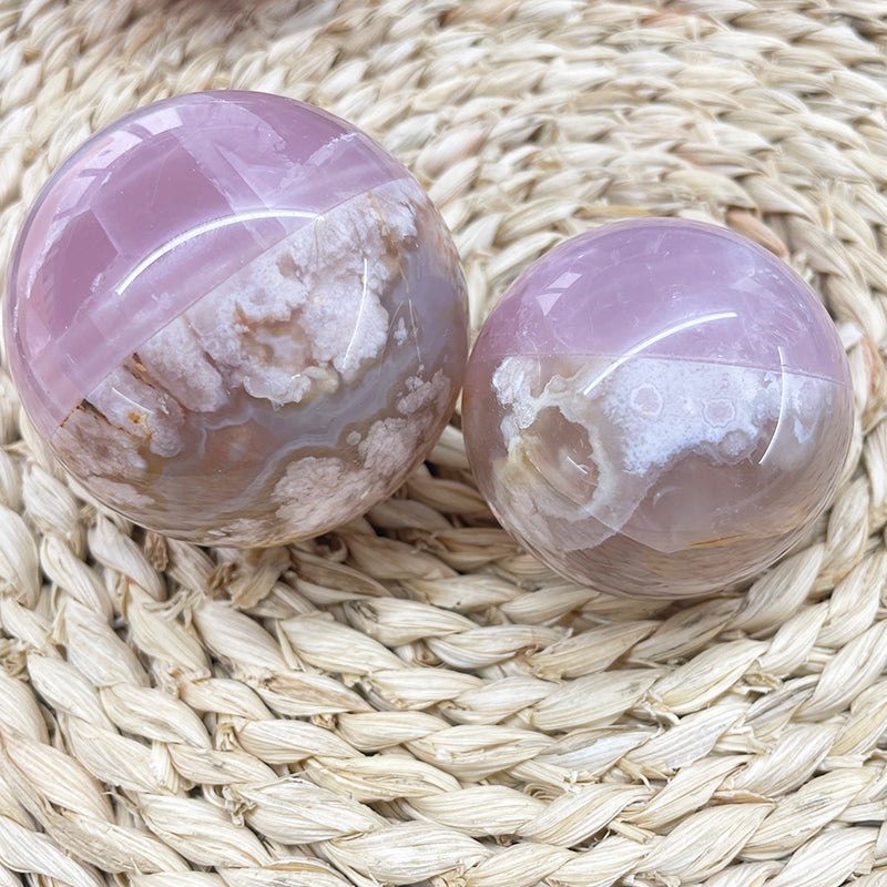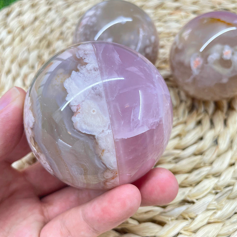 Flower Agate With Rose Quartz Stiching Spheres
