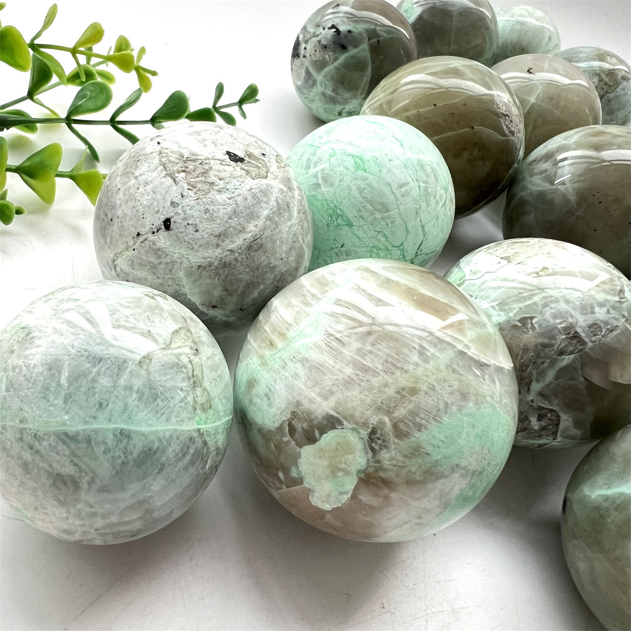 Green Moonstone Garnierite Spheres