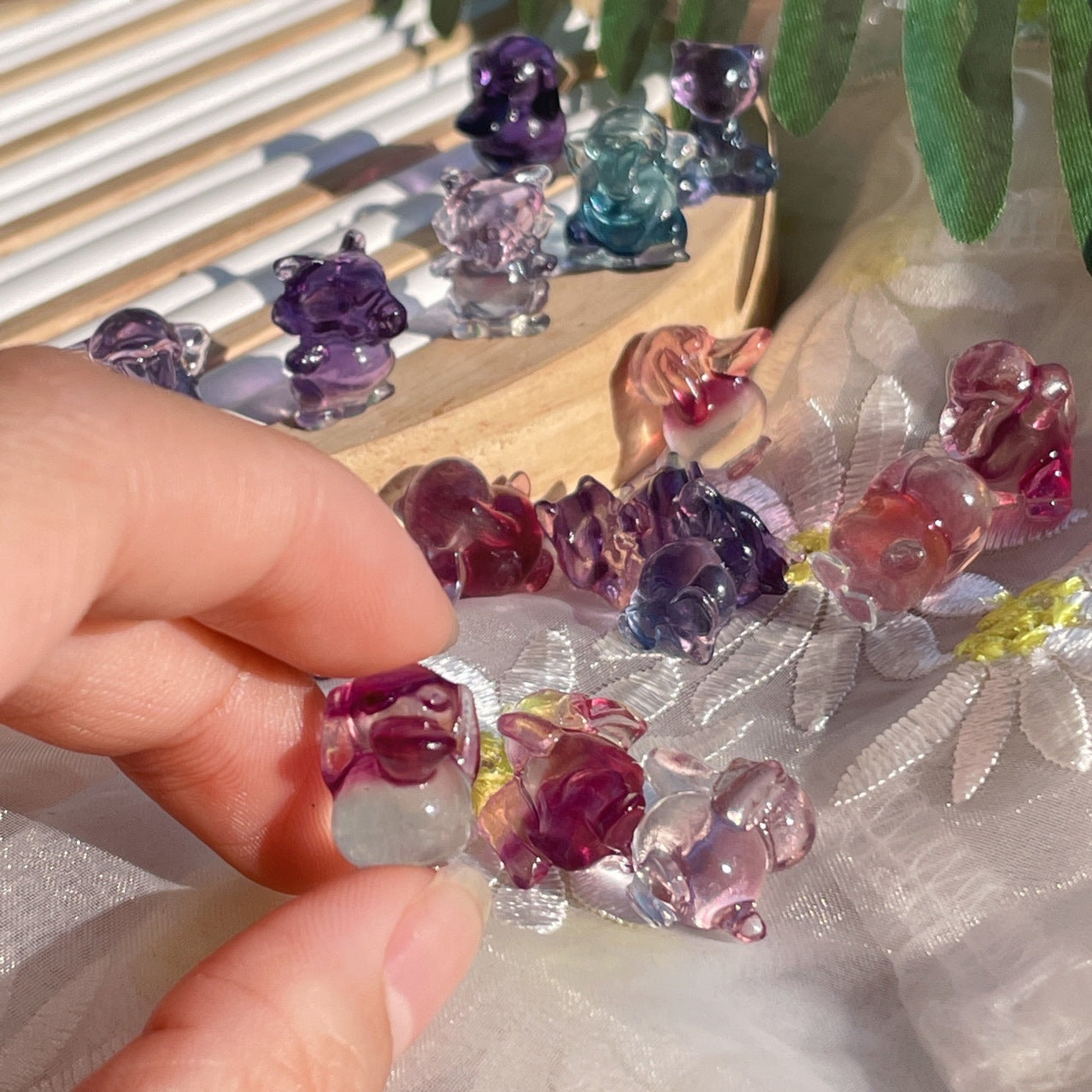 Rainbow Fluorite Mini Pokemen Carvings