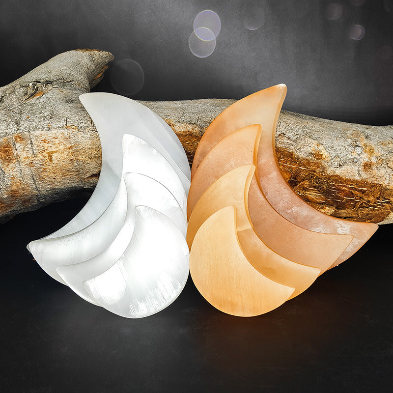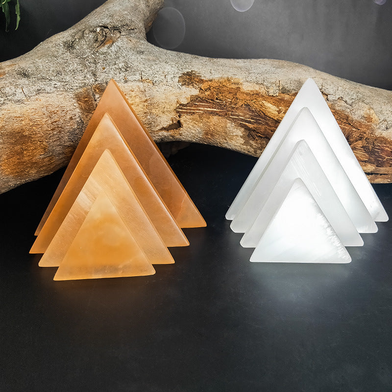 Selenite Orange White Moon Triangle Ornaments