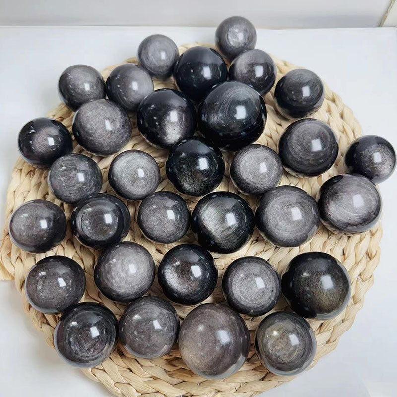 Strong Flash Silver Obsidian Spheres