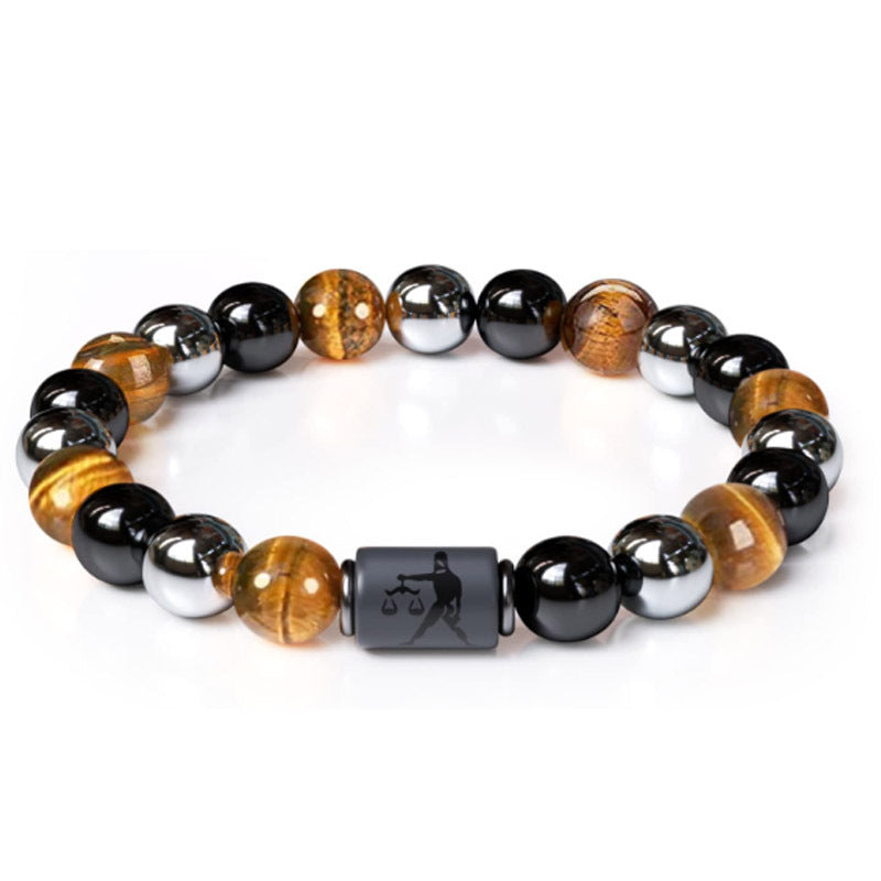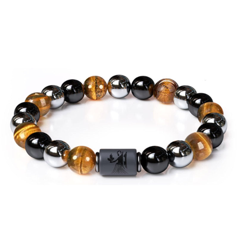Twelve Constellations Tiger Eye Hematite Mixed Bead Bracelets